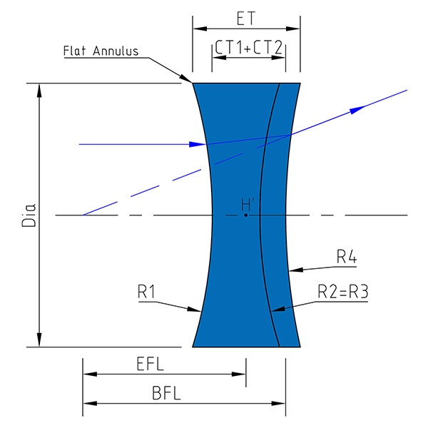 直徑:40mm;焦距:-150mm
