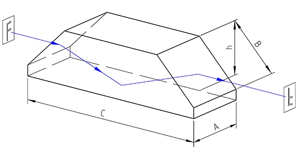 尺寸:A=5.0 mm;B=7.07 mm;C=21.1 mm;h=5.0 mm